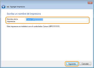 Cambie el nombre de la impresora según sea necesario y haga clic en [Siguiente].