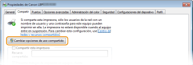 Cuando está seleccionado, el ordenador en el que se va a instalar el controlador de impresora se establece como un servidor de impresión. [Nombre compartido]