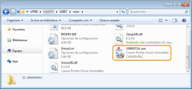 Inicie el desinstalador desde el CD-ROM/DVD-ROM de User Software o desde el archivo del controlador de impresora que se ha descargado.
