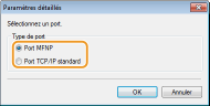 Vous pouvez sélectionner le type de port. ![]() [Port MFNP] (pour les environnements IPv4 uniquement)