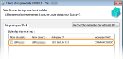Cochez la case correspondant à l'imprimante à installer dans [Liste des imprimantes].