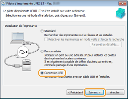 Sélectionnez [Connexion USB] et cliquez sur [Suivant].