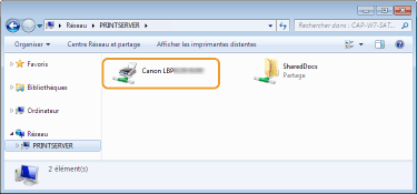 Vous pouvez utiliser le serveur d'impression pour installer des pilotes d'imprimante sur les autres ordinateurs (clients) du même réseau. Les pilotes d'imprimante pouvant être installés via le serveur d'impression, les utilisateurs des autres serveurs n'ont pas besoin d'utiliser le CD-ROM/DVD-ROM de l'imprimante.
