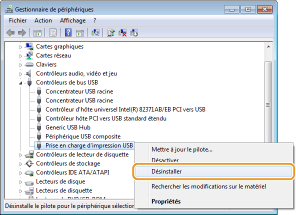 Cliquez avec le bouton droit sur [Prise en charge d'impression USB], puis cliquez sur [Désinstaller].