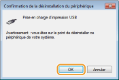 Veillez à ne supprimer que [Prise en charge d'impression USB] et à ne jamais supprimer d'autres périphériques ou d'autres pilotes de périphériques.