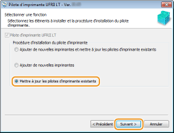 Sélectionnez [Mettre à jour les pilotes d'imprimante existants] puis cliquez sur [Suivant].