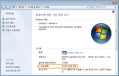 [32비트 운영 체제]가 표시됩니다.