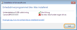 ![]() Hvis en automatisk Plug and Play-opsætningsskærm som nedenstående vises, når du tilslutter USB-kablet, skal du klikke på [Luk] eller [Annuller] for at lukke den.