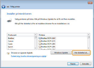 Angiv mappen, hvor printerdriveren er gemt på følgende måde: