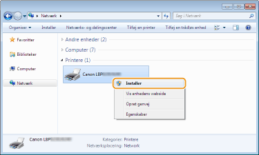 Højreklik på det nytilføjede printerikon, og klik på [Installér].