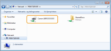 Vælg printserveren under [Netværk] eller [Mine netværkssteder].