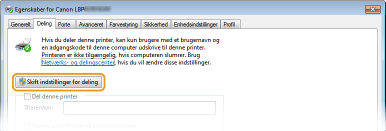 Når dette er valgt, vil den computer, hvor du installerer printerdriveren, blive tildelt som printserver. [Fælles navn]