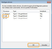 Hvis du vil bruge printerdrivere, der er downloadet fra Canons websted, skal du downloade ekstra drivere (printerdrivere for processorversioner, der er forskellige fra printserverens version).
