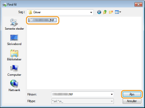 Angiv mappen, hvor de ekstra printerdrivere er gemt, vælg Inf-filen, og klik på [Åbn].