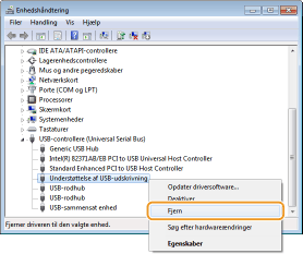 Vær omhyggelig med kun at slette [Understøttelse af USB-udskrivning], og slet aldrig andre enheder eller enhedsdrivere