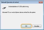 Slet USB-klassedriveren, når det ikke er muligt at installere printerdriveren korrekt, når du anvender en USB-forbindelse. Bemærk, at selvom du sletter USB-klassedriveren, vil den blive installeret igen automatisk, når du tilslutter printeren og din computer med et USB-kabel.