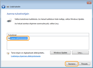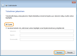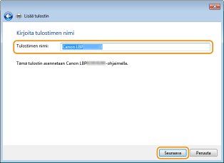 Vaihda tulostimen nimi tarvittaessa ja valitse sitten [Seuraava].
