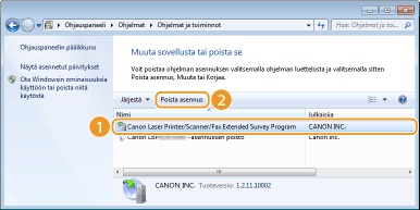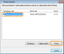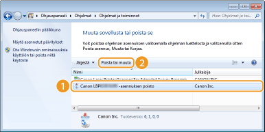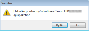 Kun haluat käynnistää asennuksen poistotoiminnon ladatusta tulostinajuritiedostosta, suorita seuraava vaihe.