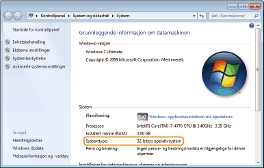 Hvis du ikke er sikker på om datamaskinen kjører 32-biters eller 64-biters Windows, følger du fremgangsmåten nedenfor.