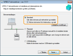 Velg [Standard], velg avmerkingsboksen [Aktiver skriverne fra hvilemodus, og søk] og klikk så på [Neste].