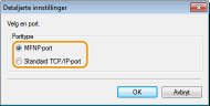 Du kan velge porttype. ![]() [MFNP-port] (kun for IPv4-miljø)