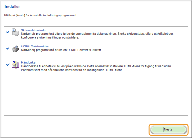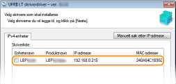 Velg avmerkingsboksen for skriveren du vil installere fra [Skriverliste].