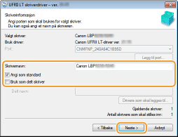 Endre skrivernavnet etter behov. [Angi som standard]