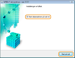 Velg avmerkingsboksen hvis du vil dele skriveren (med datamaskinen som du utfører installasjonen som utskriftsserver på). Konfigurere en utskriftsserver under installasjon av skriverdriver |