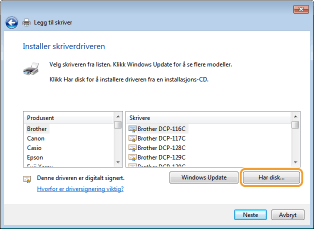 Klikk på [Legg til en skriver] eller [Legg til skriver].