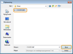 Angi mappen der skriverdriveren er lagret, velg Inf-filen og klikk så på [Åpne].