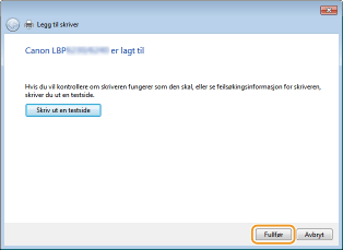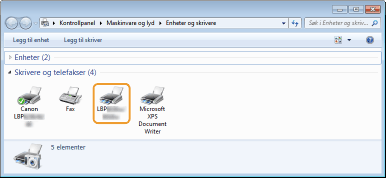 Installasjonen for bruk av WSD er fullført når det er lagt til et ikon for skriveren i skrivermappen.