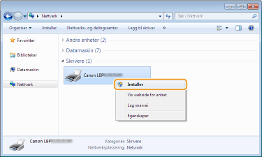 Høyreklikk på ikonet for den skriveren som nettopp ble lagt til og klikk på [Installer].