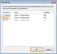 Velg de ekstra driverne, og klikk på [OK].