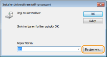 ![]() Angi mappen der de aktuelle skriverdriverne er lagret, som følger.