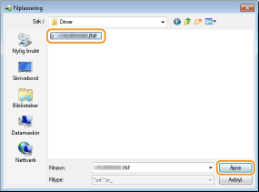 Angi mappen hvor de ekstra driverne er lagret, velg Inf-filen, og klikk på [Åpne].