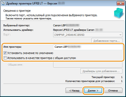 Установите флажок, если принтер должен использоваться по умолчанию. [Использовать в качестве принтера с общим доступом]