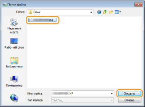 Укажите папку, в которой хранятся дополнительные драйверы, выберите файл Inf и щелкните [Открыть].