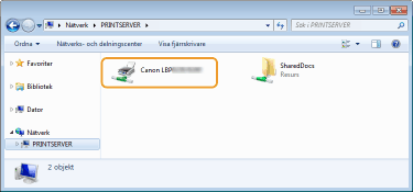 Markera utskriftsservern i [Nätverk] eller [Mina nätverksplatser].