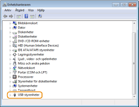 [USB Printing Support] visas inte om USB-klassdrivrutinen är felinstallerad. Stäng i så fall [Enhetshanteraren] utan att göra något ytterligare.