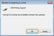 Ta bort USB-klassdrivrutinen om det inte är möjligt att installera skrivardrivrutinen på rätt sätt när du använder en USB-anslutning. Observera att även om du tar bort USB-klassdrivrutinen installeras den automatiskt igen när du ansluter skrivaren och datorn med en USB-kabel.