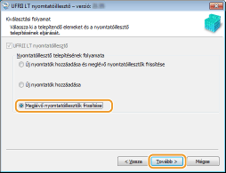 Válassza a [Meglévő nyomtatóillesztők frissítése] lehetőséget, majd kattintson a [Tovább] gombra.