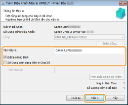 Chọn hộp kiểm tra nếu bạn muốn sử dụng máy in của bạn làm máy in mặc định. [Sử Dụng dưới dạng Máy In Chia Sẻ]