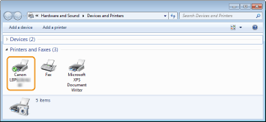 Nếu trình điều khiển máy in đã được cài đặt một cách chính xác, một biểu tượng cho máy in được cài đặt sẽ được hiển thị trong thư mục máy in (Hiển thị Thư Mục Máy In).