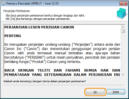 Pilih kotak semak jika anda ingin berkongsi pencetak (menggunakan komputer apabila anda melakukan pemasangan sebagai pelayan cetakan). Menyediakan Pelayan Cetakan semasa Pemasangan Pemacu Pencetak |