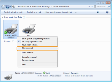 Jika anda menggunakan pencetak yang disambungkan oleh USB, anda tidak boleh menyediakan pelayan cetakan semasa anda memasang pemacu pencetak. Sediakan pelayan cetakan selepas memasang pemacu pencetak dengan menggunakan prosedur yang diterangkan di atas.