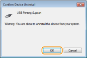 Berhati-hati untuk memadam [USB Printing Support] sahaja dan jangan padam sebarang peranti lain atau pemacu peranti