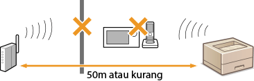 Adakah terdapat sebarang halangan seperti dinding di antara pencetak dan penghala wayarles?