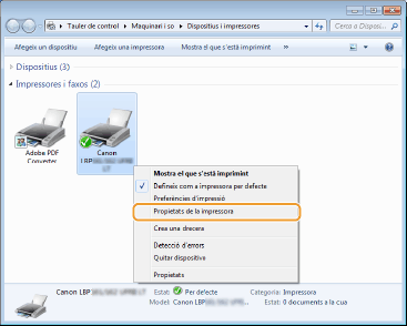 Si feu servir una impressora connectada mitjançant USB, no podeu configurar un servidor d'impressió en el moment d'instal·lar el controlador d'impressora. Configureu el servidor d'impressió després d'instal·lar el controlador d'impressora, seguint el procediment descrit anteriorment.