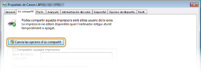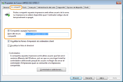 En seleccionar això, l'ordinador en el qual instal·leu el controlador d'impressora queda designat com a servidor d'impressió. [Nom compartit]