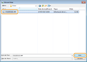 Especifiqueu la carpeta on hi ha desats els controladors addicionals, seleccioneu el fitxer Inf i fe clic a [Obre].